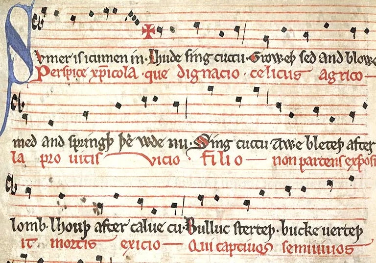 The sentence, above, is essentially a foreign language to today's English speakers, but it is English —or, rather, a very old, archaic version of it. Just like this Old English sentence might surprise you with its authenticity, so might the reality of music during the the Middle Ages, which lasted approximately from the year 500 to the year 1400.