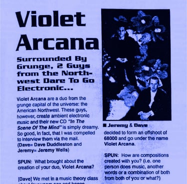 I didn't embark on this journey alone. I brought in David Duddleston as a co-contributor, whose technical sensibilities and shared passion for synthesis allowed us to push the project beyond simple ambient sketches. In fact, it was David, who helped with sound design and some production work in 68000, who pointed out that my musical style was changing. When I finished the song “Disillusion” for the 50 Years of Sunshine compilation, he was pretty emphatic that what I had made “didn't sound like 68000.” When I made my next 68000 track, shortly after, for the From Here To Tranquility Volume 2 compilation, “See You in My Eyes,” even I could clearly hear something had fundamentally changed. That’s when David, who wanted a larger role in writing and composition, and I decided that we should really start a new project. The owner of Silent Records (68000’s label), Kim Cascone, was supportive and understanding of our desire to use these two 68000 tracks for the basis of our new Violet Arcana project, and contractually allowed us to re-release these songs (under new titles) as Violet Arcana works.
